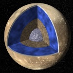 Ганимед, гигантская луна ЮпитераКак утверждают китайские источники, Гань Дэ увидел большую луну планеты Юпитер без помощи всяких приборов еще в 365 году до нашей эры. Симон Марий обнаружил Ганимед в 1609, но затянул с обнародованием результатов своих наблюдений. В итоге официальным автором открытия считается изобретатель телескопа Галилео Галилей, который в 1610 году увидел спутник. И все же своим именем небесное тело обязано Марию и Кеплеру: именно они выдвинули предложение дать четырем лунам, открытым Галилеем, имена фаворитов Зевса (Ганимед, Каллисто, Европа и Ио). Наблюдения с Земли были поддержаны исследовательскими миссиями в XX веке. К Ганимеду отправлялись зонды «Пионеры» (10 и 11), «Вояджеры» (1 и 2) и «Галилео», фотографии передал также пролетающий мимо зонд «Новые горизонты». Небесное тело настолько велико, что даже в китайскую историю о Гань Дэ легко поверить. Самый большой спутник Юпитера – рекордсмен по размеру и массе среди известных лун в Солнечной системе (диаметр 5268 км). Даже Титан, луна Сатурна, оказался на 2% меньше. Ганимед на 8% крупнее Меркурия, правда, уступает планете массой почти вдвое. Ганимед и его соседиГанимед, спутник Юпитера, синхронизирован с ним: находясь на планете, можно увидеть лишь одно полушарие гигантской луны. Это происходит потому, что за 7 дней и 3 часа спутник совершает полный обход орбиты и завершает вращение вокруг собственной оси. От Юпитера он удален на 1 070 400 км. У луны интересные взаимоотношения с соседними лунами Европой и Ио: они находятся в орбитальном резонансе Лапласа. Пока Ганимед совершает круг по орбите, Европа успевает сделать два круга, а Ио – обойти Юпитер четыре раза. Есть гипотеза, что причиной послужило изначальное отдаление от планеты из-за приливных сил Ио, которая вовлекла в резонанс Европу и спровоцировала изменение орбиты последней. В итоге в резонанс был вовлечен Ганимед. Впрочем, это не единственная теория. Возможно, подобная ситуация сложилась сразу при образовании лун, или они пережили другие орбитальные резонансы. Древнейшие кратеры ГанимедаПримерно треть луны выглядит на снимках темной и испещренной ударными кратерами. Возраст большинства воронок 3,5-4 млрд лет, но встречаются и более молодые, окруженные светлыми выбросами из недр. Можно различить очень древние, почти исчезающие из-за сглаживания ледяных стенок воронки диаметром до 360 км (факула Мемфис). Геологические процессы оставили следы на более светлых районах. Тектонические подвижки вызвали появление борозд, хотя определить их возраст не удалось. Причиной подвижек называют орбитальные резонансы Ганимеда в прошлом или формирование внутренних слоев недр, что привело к их разогреву и напряжению в литосфере. Область Галилея – очень темный район с видимыми концентрическими структурами – тоже результат геологической активности. Космические зонды засняли полярные шапки, которыми «украшен» Ганимед. Спутник имеет на полюсах наименее защищенные области, поэтому ионы магнитосферы воздействуют на лед именно в этих районах, превращая его в иней. Слоеный океан и железное ядроГанимед – спутник с железным сердцем. Его расплавленное электропроводное ядро, богатое железом, по всей видимости, является источником магнитного поля. Ряд исследователей считают, что жидкое ядро содержит твердое железное ядро. Их обволакив