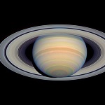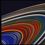 С планеты Земля в телескоп хорошо видны три кольца: внешнее, средней яркости кольцо А; среднее, наиболее яркое кольцо В и внутреннее, неяркое полупрозрачное кольцо С, которое иногда называется креповым. Кольца чуть белее желтоватого диска Сатурна. Расположены они в плоскости экватора планеты и очень тонки: при общей ширине в радиальном направлении примерно 60 тыс.км. они имеют толщину менее 3 км. Спектроскопически было установлено, что кольца вращаются не так, как твердое тело, - с расстоянием от планеты Сатурн скорость убывает. Более того, каждая точка колец имеет такую скорость, какую имел бы на этом расстоянии спутник, свободно движущийся вокруг Сатурна по круговой орбите. Отсюда ясно: кольца Сатурна по существу представляют собой колоссальное скопление мелких твердых частиц, самостоятельно обращающихся вокруг планеты. Размеры частиц столь малы, что их не видно не только в земные телескопы, но и с борта космических аппаратов. Характерная особенность строения колец - темные кольцевые промежутки (деления), где вещества очень мало. Самое широкое из них (3500 км) отделяет кольцо В от кольца А и называется "делением Кассини" в честь астронома, впервые увидевшего его в 1675 году. При исключительно хороших атмосферных условиях таких делений с Земли видно свыше десяти.Природа их, по-видимому, резонансная. Так, деление Кассини - это область орбит, в которой период обращения каждой частицы вокруг Сатурна ровно вдвое меньше, чем у ближайшего крупного спутника Сатурна - Мимаса. Из-за такого совпадения Мимас своим притяжением как бы раскачивает частицы, движущиеся внутри деления, и и в конце концов выбрасывает их оттуда. Бортовые камеры космических аппаратов "Вояджеров" показали, что с близкого расстояния кольца Сатурна похожи на граммофонную пластинку: они как бы расслоены на тысячи отдельных узких колечек с темными прогалинами между ними. Прогалин так много, что объяснить их резонансами с периодами обращения спутников Сатурна уже невозможно. Чем же объясняется эта тонкая структура? Вероятно, равномерное распределение частиц по плоскости колец механически неустойчиво. Вследствие этого возникают круговые волны плотности - это и есть наблюдаемая тонкая структура. Помимо колец А,В и С "Вояджеры" обнаружили еще четыре: D,E,F и G. Все они очень разрежены и потому неярки. Кольца D и E с трудом видны с планеты Земля при особо благоприятных условиях; кольца F и G обнаружены впервые. Порядок обозначения колец объясняется историческими причинами, поэтому он не совпадает с алфавитным. Если расположить кольца по мере их удаления от Сатурна, то мы получим ряд: D,C,B,A,F,G,E. Особый интерес и большую дискуссию вызвало кольцо F. К сожалению, вывести окончательное суждение об этом объекте пока не удалось, так как наблюдения двух "Вояджеров" не согласуются между собой. Бортовые камеры "Вояджера-1" показали, что кольцо F состоит из нескольких колечек общей шириной 60 км., причем два из них перевиты друг с другом, как шнурок. Некоторое время господствовало мнение, что ответственность за эту необычную конфигурацию несут два небольших новооткрытых спутника, движущихся непосредственно вблизи кольца F, - один из внутреннего края, другой - у внешнего (чуть медленнее первого, так как он дальше от планеты). Притяжение этих спутников не дает крайним частицам уходить далеко от его сер
