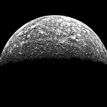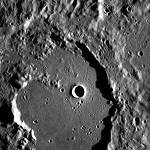 С пролетной траектории космического аппарата "Маинер-10" в 1974 г. было сфотографировано свыше 40% поверхности Меркурия с разрешением от 4 мм до 100 м, что позволило увидеть ближайшую к Солнцу планету примерно так же, как естественный спутник Земли - Луну в ночном небе нашей планеты. Обилие кратеров - наиболее очевидная черта его поверхности, которую по-первому впечатлению можно уподобить Луне. И не случайно даже специалисты - селенологи, которым показали эти снимки вскоре после их получения приняли их за фотографии Лунной поверхности. Действительно, морфология кратеров близка к лунной, их ударное происхождение не вызывает сомнений: у большинства виден очерченный вал следы выбросов раздробленного при ударе материала с образованием в ряде случаев характерных ярких лучей и поле вторичных кратеров. У многих кратеров различима центральная горка и террасная структура внутреннего склона. Интересно, что такими особенностями обладают не только практически все крупные кратеры диаметром свыше 40-70 км, но и значительно большее число кратеров меньших размеров, в пределах 5-70 км (конечно, речь здесь идет о хорошо сохранившихся кратерах). Эти особенности можно отвести как на счет большей кинетической энергии тел, выпадавших на поверхность, так и на счет самого материала поверхности. Степень эрозии и сглаживание кратеров различна. Например, хорошо заметные лучевые структуры говорят о том, что она невелика, в то же время у ряда кратеров сохранились едва заметные кромки. В целом меркурианские кратеры по сравнению с лунными менее глубокие, что также можно объяснить большей кинетической энергией метеоритов из-за большего, чем на Луне ускорения силы тяжести на ближайшей к Солнцу планете. Поэтому образующий при ударе кратер эффективнее заполняется выбрасываемым материалом. По этой же причине вторичные кратеры расположены ближе к центральному, чем на Луне, и отложения раздробленного материала в меньшей степени маскируют первичные формы рельефа. Сами вторичные кратеры глубже лунных, что опять же объясняется тем, что выпадающие на поверхность осколки испытывают большее ускорение силы тяжести. Так же, как и на Луне, можно в зависимости от рельефа выделить преобладающие неровные "материковые" и значительно более гладкие "морские" районы. Последние преимущественно представляют собой котловины, которых, однако, существенно меньше, чем на Луне, их размеры обычно не превышают 400-600 км. К тому же, некоторые котловины слабо различимы на фоне окружающего рельефа. Исключение составляет упоминавшаяся обширная котловина Канорис (Море Жары) протяженностью около 1300 км, напоминающая известное Море Дождей на Луне. Возможно, что имеются и другие подобные котловины на оставшейся пока не отснятой большей части поверхности планеты. Морфология обрамляющих валов, поля вторичных кратеров, структура поверхности внутри котловины Канорис дают основания предполагать, что при ее формировании было выброшено больше материала, чем при образовании Моря Дождей, и что в дальнейшем могли последовательно происходить процессы дополнительного проседания и поднятия дна, связанные с возможным оттоком магмы и изостатическим выравниванием. В преобладающей материковой части поверхности Меркурия можно выделить как сильно кратеризированные районы, с наибольшей степенью деграда
