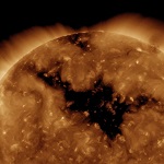 Протуберанцы в течение солнечного максимума могут возникать ежедневно, но неизвестно, какой именно силой они будут обладать и затронут ли они нашу планету. В течение нескольких прошлых месяцев всплески солнечной активности и вызванные ими направленные на Землю потоки энергии были слишком слабы, чтобы причинить какой-либо ущерб. Помимо рентгеновского излучения, это явление несет и другие опасности: Солнце выбрасывает миллиард тонн ионизированного водорода, волна которого перемещается со скоростью миллион миль в час и способна достигнуть Земли за несколько дней. Еще большую проблему представляют собой энергетические волны протонов и альфа-частиц. Они перемещаются с гораздо большей скоростью и не оставляют времени для принятия контрмер, в отличие от волн ионизированного водорода, с пути которых можно успеть убрать спутники и самолеты. |