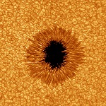 О том, что на Солнце бывают пятна, люди узнали уже очень давно. В древних русских и китайских летописях, а также в хрониках других народов не редко встречались упоминания о наблюдениях пятен на Солнце. В русских летописях отмечалось, что пятна были видны "Аки гвозди". Записи помогли подтвердить установленную уже позже (в 1841 году) закономерность периодического увеличения числа солнечных пятен. Чтобы заметить такой объект простым глазом (при соблюдении, конечно, мер предосторожности - сквозь густо закопченное стекло или засвеченную негативную фотопленку), необходимо, чтобы его размер на Солнце был не менее 50 - 100 тысяч километров, что в десятки раз превышает радиус третьей от Солнца планеты - Земли. Солнце состоит из раскаленных газов, которые все время движутся и перемешиваются, и поэтому ничего постоянного и неизменного на солнечной поверхности нет. Самыми устойчивыми образованиями являются солнечные пятна. Но и их вид изо дна в день меняется, и они тоже то появляются, то исчезают. В момент появления солнечное пятно обычно имеет небольшие размеры, оно может исчезнуть, но может и сильно увеличиться.