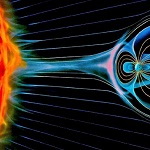 Солнечный ветер – поток заряженных частиц (протонов и электронов), испускаемых нагретыми внешними слоями атмосферы звезды, который простирается до границ нашей планетарной системы. Светило ежесекундно теряет миллионы тонн своей массы, из-за этого явления. Около орбиты планеты Земля скорость частиц солнечного ветра достигает 400 километров в секунду (они перемещаются по нашей звездной системе со сверхзвуковой скоростью), а плотность cолнечного ветра от нескольких до нескольких десятков ионизированных частиц в сантиметре кубическом. Солнечный ветер уносит газы, которые отделяются от планетных атмосфер под его воздействием, формирует хвосты комет. Он останавливает космическую радиацию галактического происхождения – а следовательно оберегает нашу звездную систему от внешних, галактических излучений. Магнитное поле планеты, является невидимой защитой от солнечного ветра, оно препятствует оттоку атомов атмосферы в открытый космос. При столкновении Солнечного ветра с магнитным полем планеты происходит оптическое явление, которое на Земле мы называем – северное сияние, сопровождаемое магнитными бурями. |